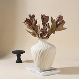 This modern minimalist ceramic vase features an elegant sculptural form inspired by natural flowing textures. The soft curves and raised surface details create a refined, artistic look that feels both modern and timeless. Finished with a smooth matte glaze, the vase offers a calm, neutral presence that complements a wide range of interior styles.